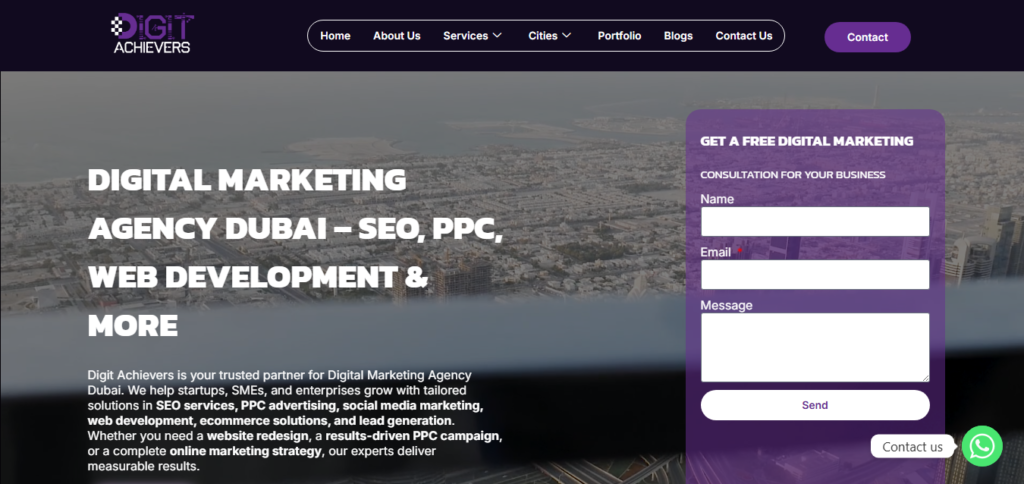 Digit Achievers is a Dubai-based digital marketing agency providing services like SEO, PPC, social media marketing, web development, and content solutions to help businesses grow their online presence.