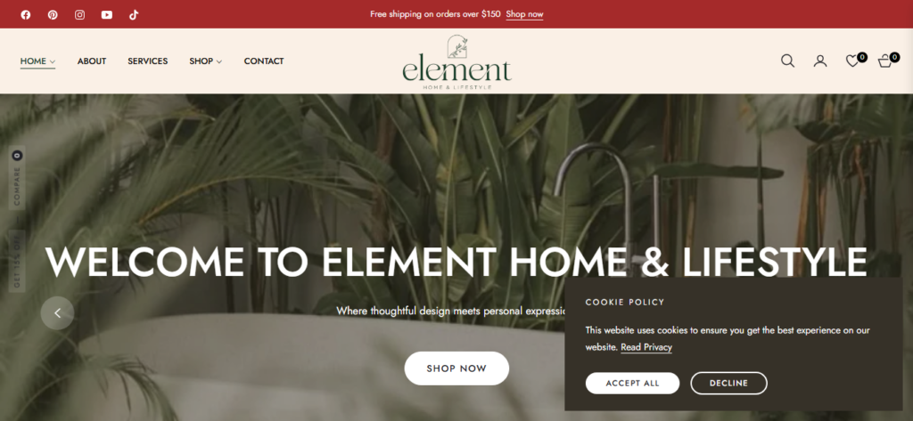 Element Home & Lifestyle is an online home décor and lifestyle shop offering thoughtfully curated furniture, lighting, candles, pillows, and styling services.